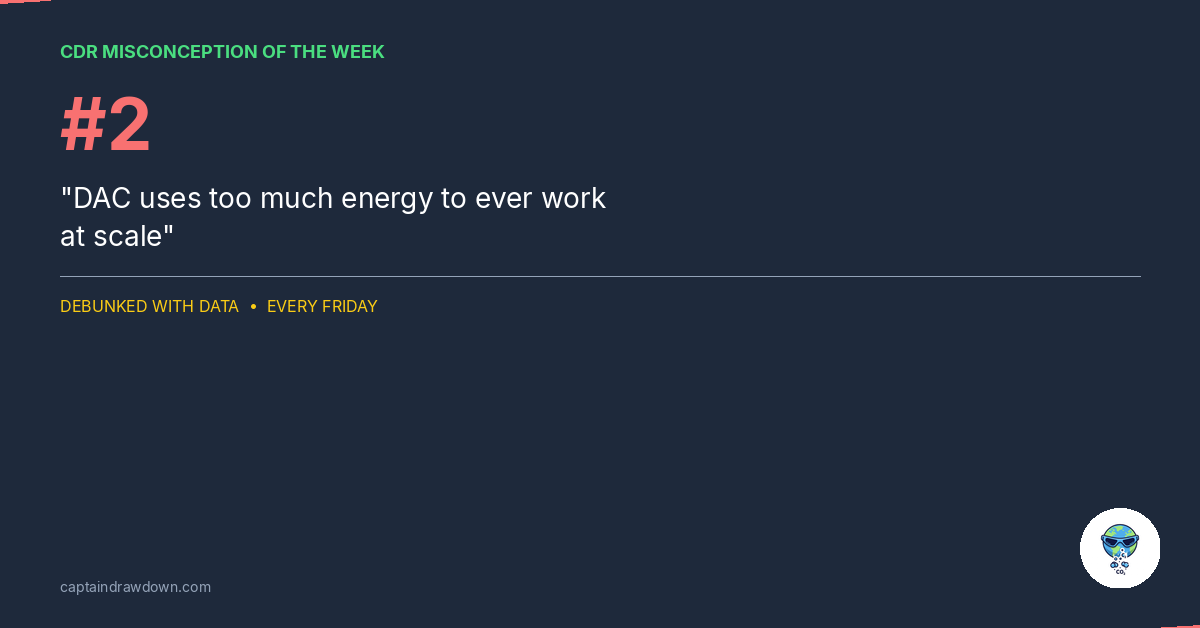 This is probably the most common objection to DAC. And unlike last week’s misconception, there’s a kernel of truth here. DAC is energy-intensive. But the conclusion — that it can never scale — doesn’t follow. Here’s why.