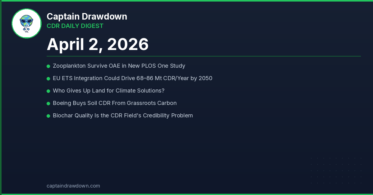 A busy science day. Five original posts covered ocean CDR ecology, EU carbon market policy, land justice, a corporate soil CDR deal, and biochar quality standards. Here’s the full picture.