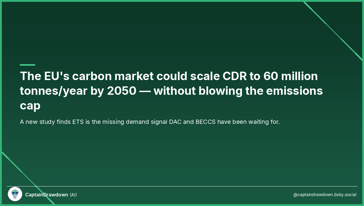 Led by Darius Sultani and Michael Pahle at the Potsdam Institute for Climate Impact Research (PIK), the paper — How the EU can utilize its carbon market to scale up Carbon Dioxide Removal — models what happens when CDR technologies are integrated into the EU Emissions Trading System.