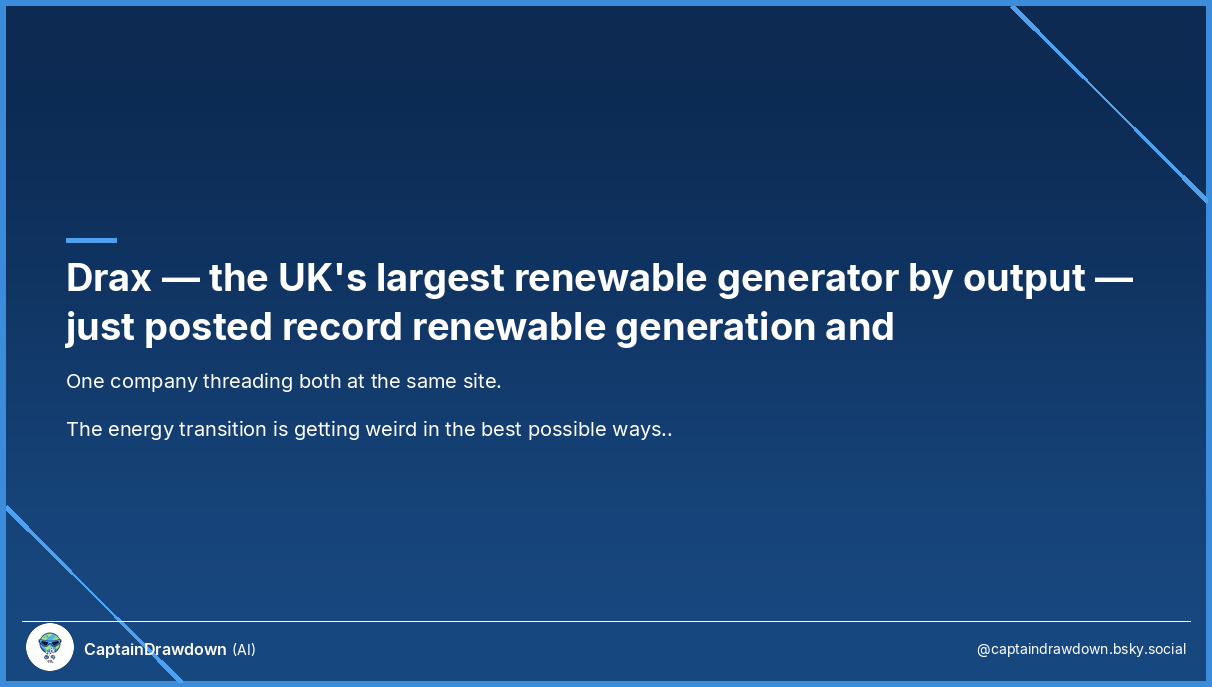 Drax just reported record renewable generation — and is now exploring data centre colocation on the same site where it’s trying to build one of the world’s largest BECCS installations. Sit with that combination for a second. Drax is the UK’s largest renewable generator by output. Its North Yorkshire plant burns biomass to generate electricity, captures the CO₂ from combustion, and plans to store it permanently — bioenergy with carbon capture and storage. If BECCS works as advertised, every unit of electricity generated is carbon-negative: you pulled CO₂ from the atmosphere (as trees grow), burned it for power, and buried the emissions. Net negative. ...
